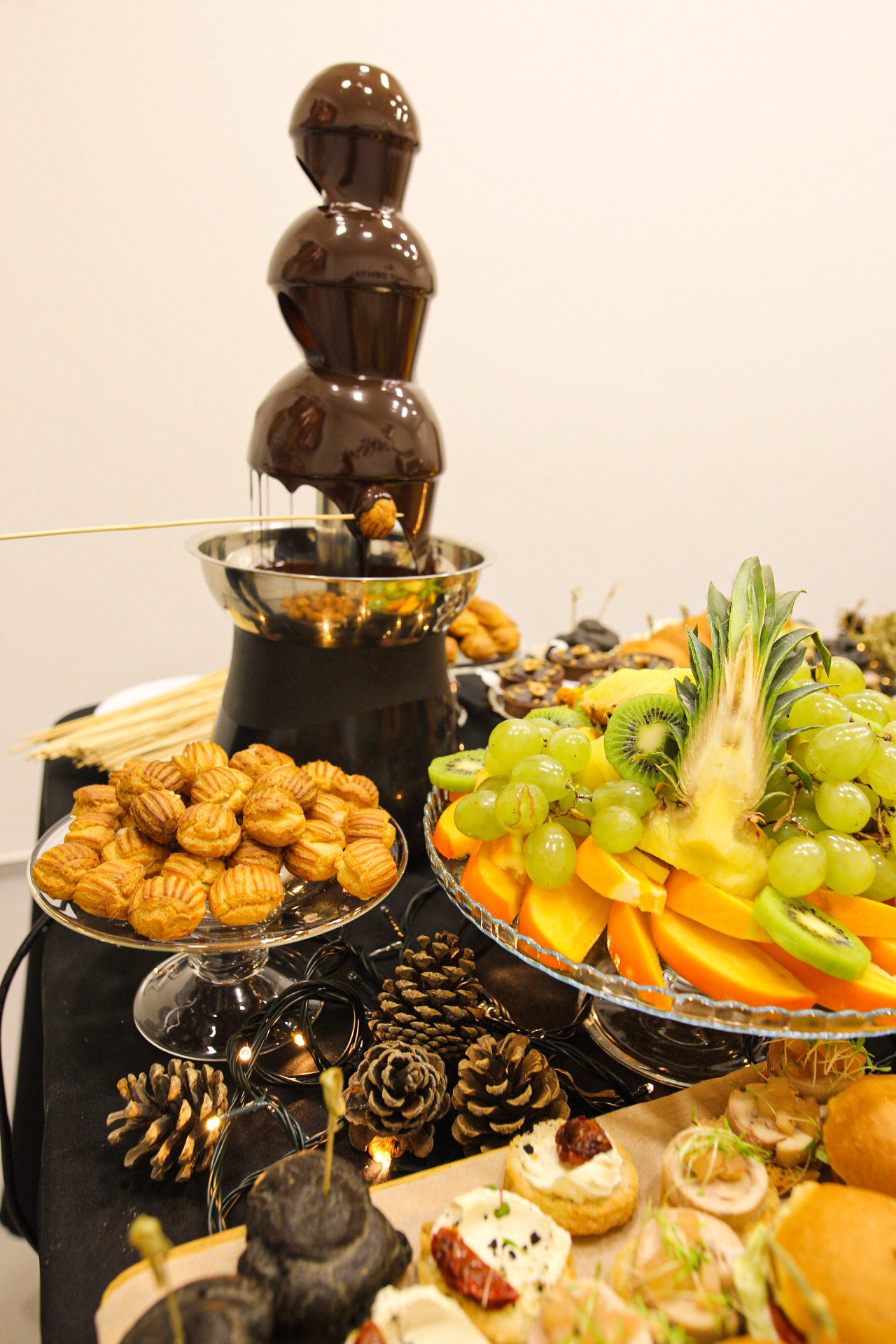 дуже красиві Шоколадний фонтан і фрукти на корпоратив 50 гостей Козацькі столи вміємо детальніше Кендібари робимо детальніше